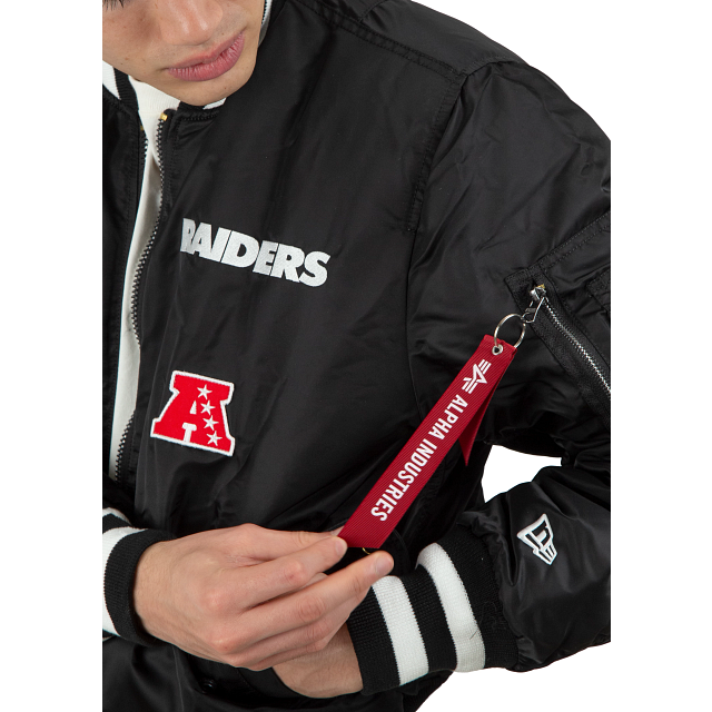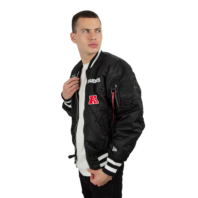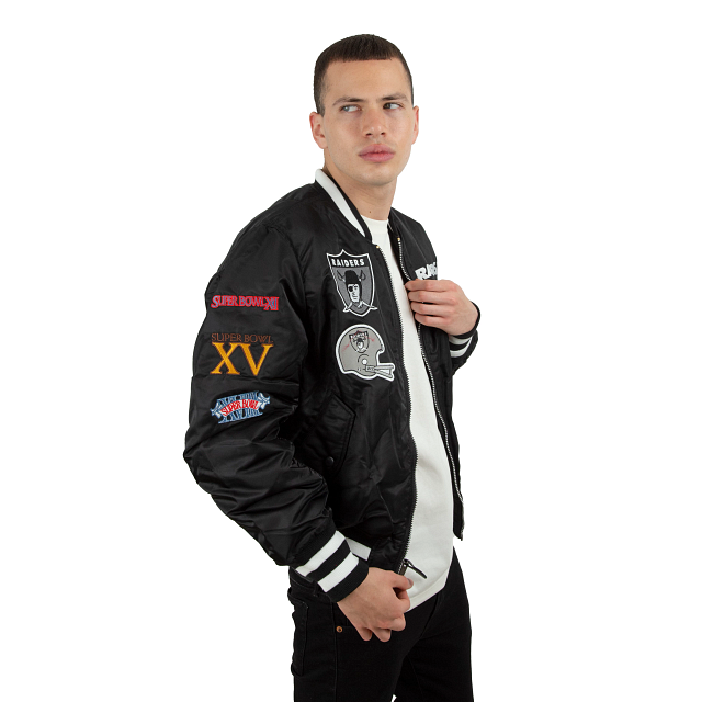 Esta MA-1 Bomber Jacket Alpha Industries de Las Vegas Raiders presenta parches de los Raiders bordados en el pecho y en las mangas con un logo del equipo en la parte trasera. El lado reversible de la chamarra presenta un diseño en color negro y una etiqueta de New Era con un mensaje de unión en diferentes idiomas en la parte trasera. Cómprala ya.