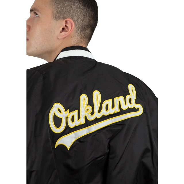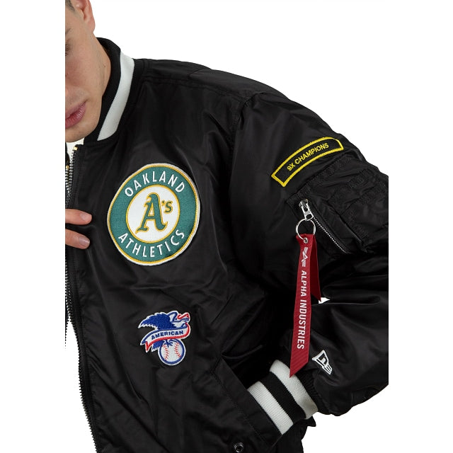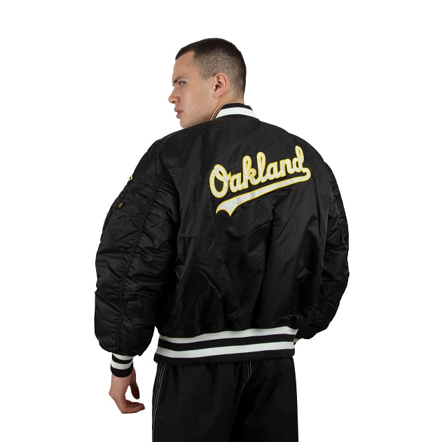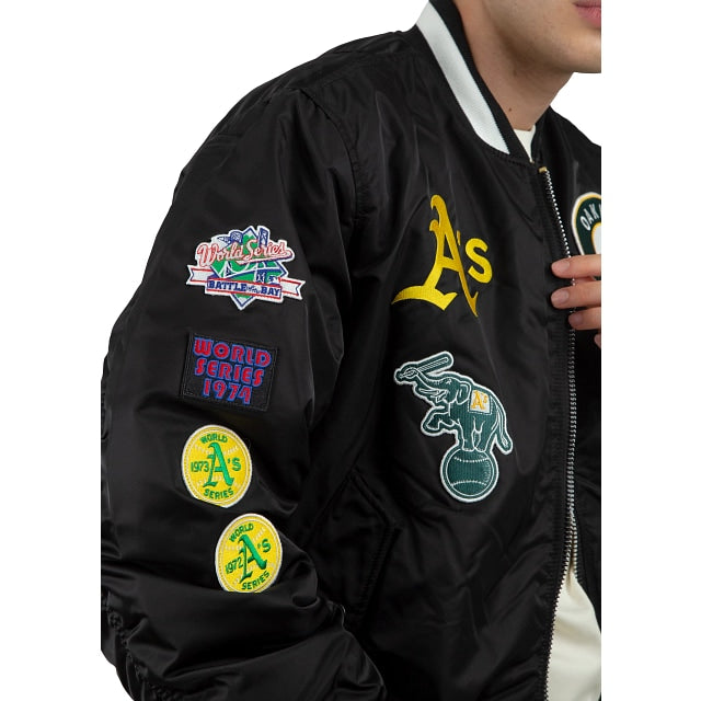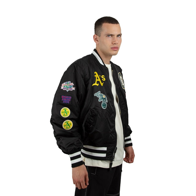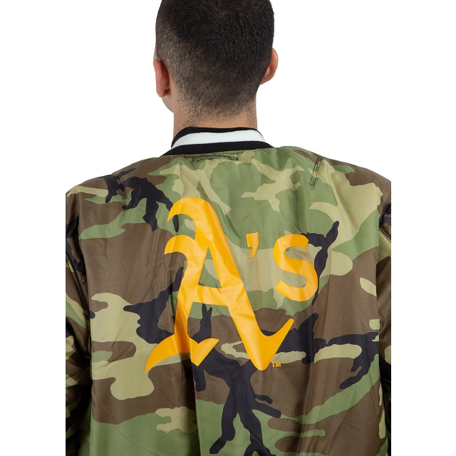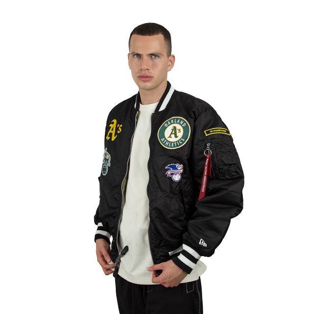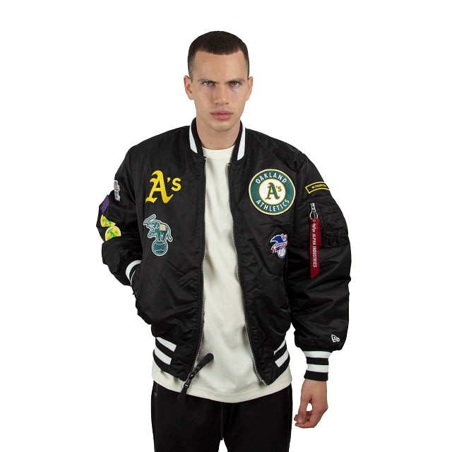 Esta MA-1 Bomber Jacket Alpha Industries X Oakland Athletics presenta parches de los Athletics bordados en el pecho y en las mangas con un logo del equipo en la parte trasera. El lado reversible de la chamarra presenta un diseño en camuflaje militar y una etiqueta de New Era con un mensaje de unión en diferentes idiomas. Cómprala ya.