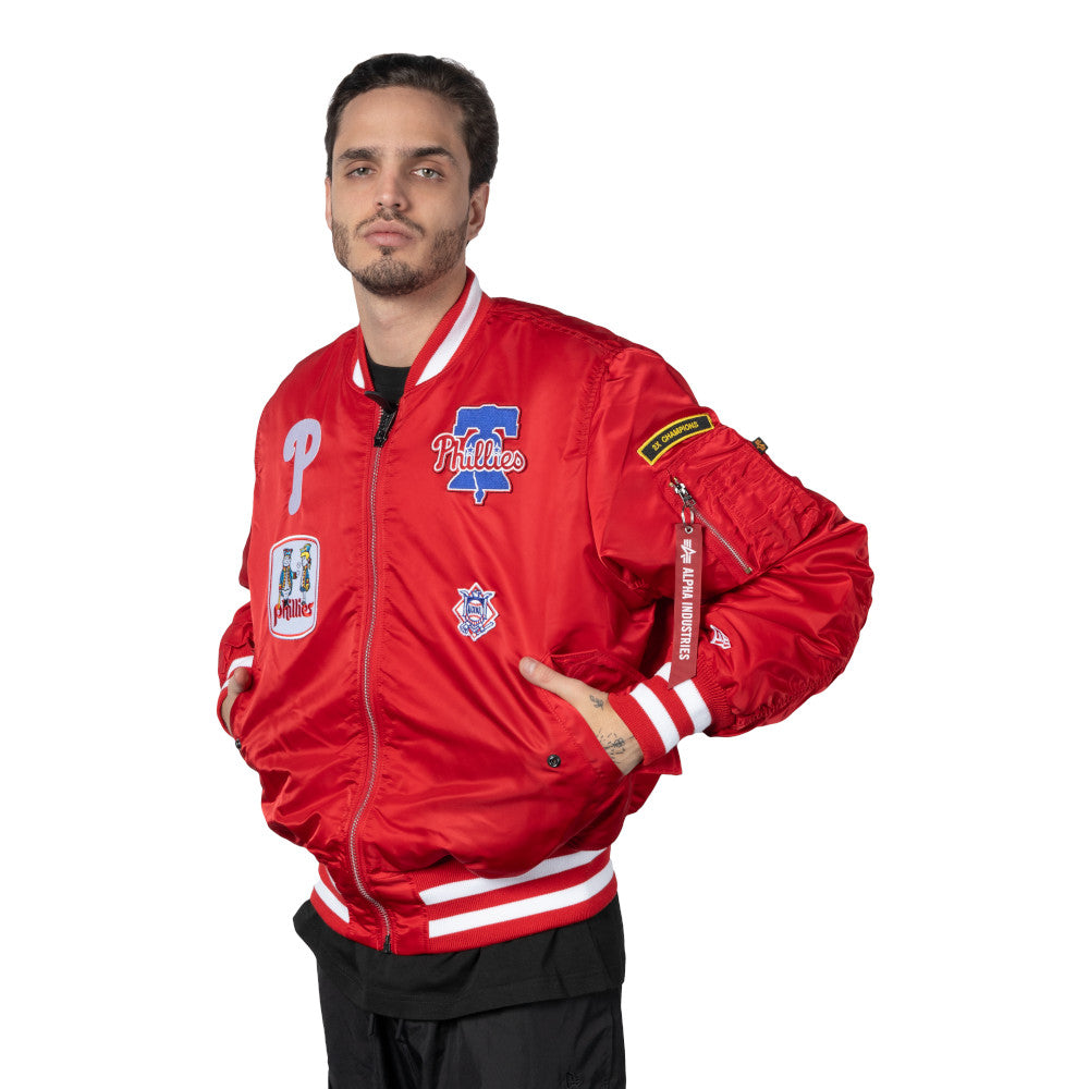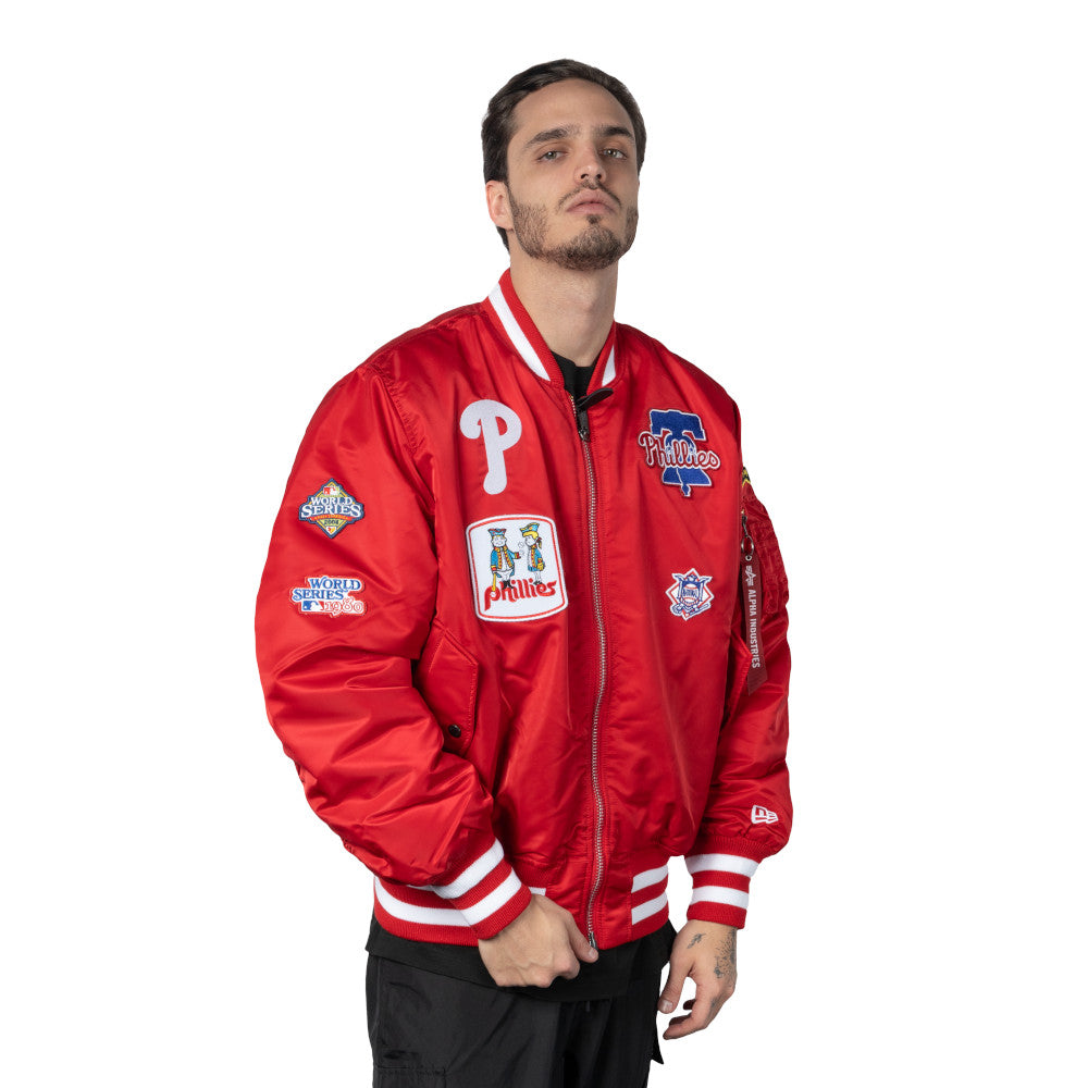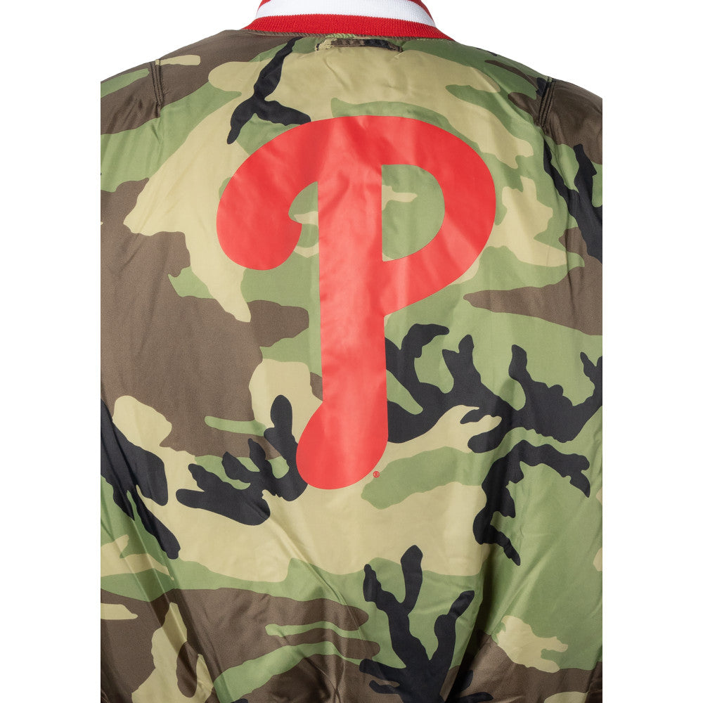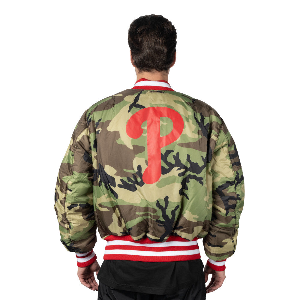 Esta MA-1 Bomber Jacket Alpha Industries X Philadelphia Phillies de la colección Alpha x New Era x MLB presenta parches de los Phillies bordados en el pecho y en las mangas con un logo del equipo en la parte trasera. El lado reversible de la chamarra presenta un diseño en camuflaje militar y una etiqueta de New Era con un mensaje de unión en diferentes idiomas. Cómprala ya.
