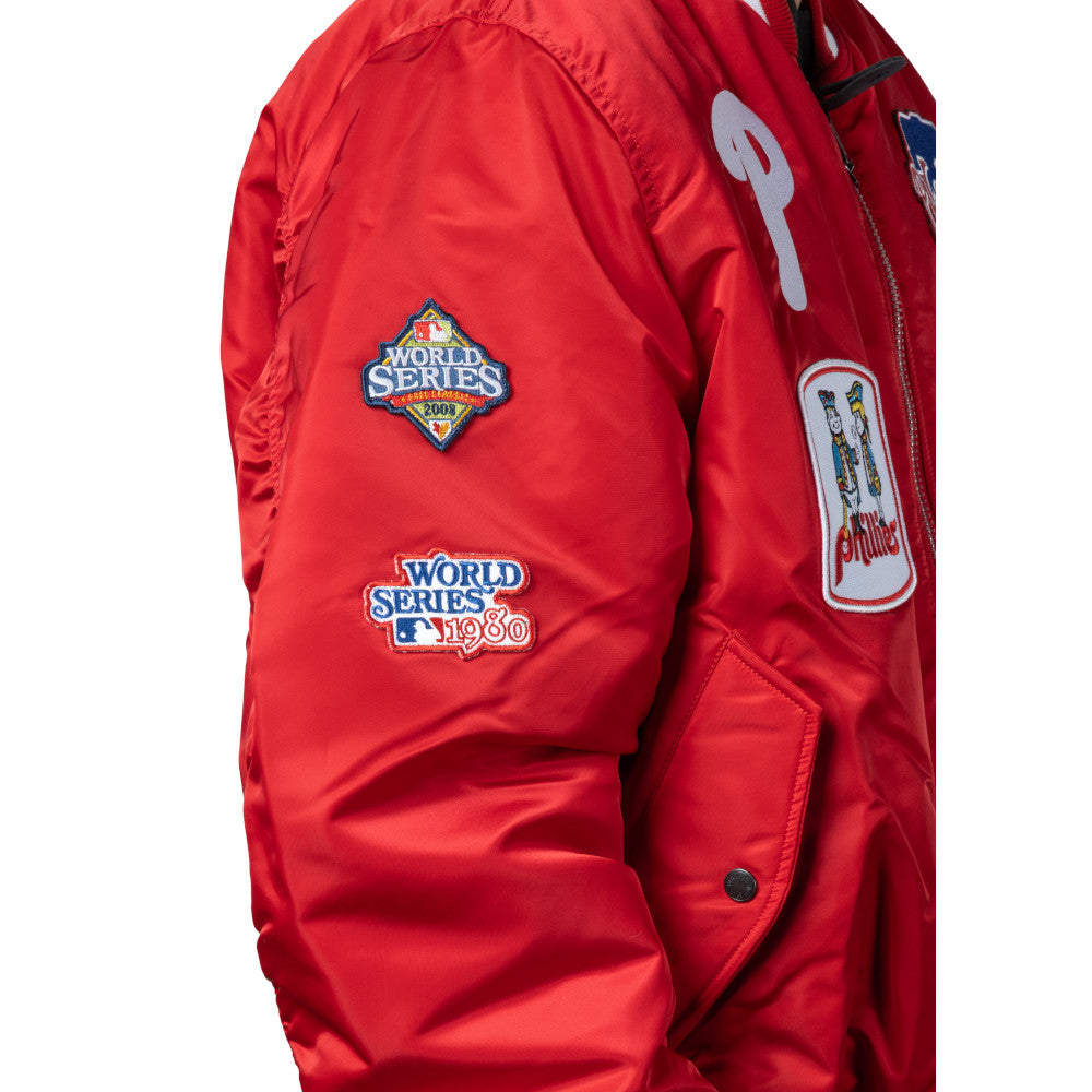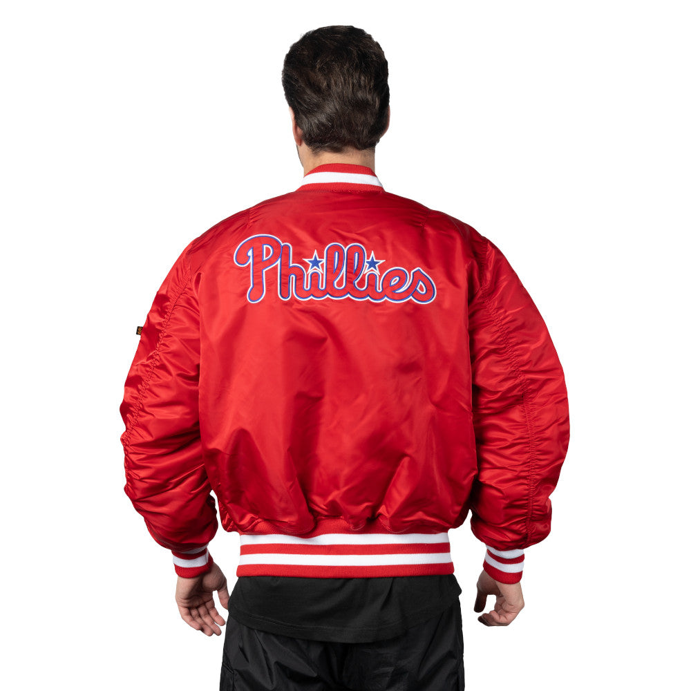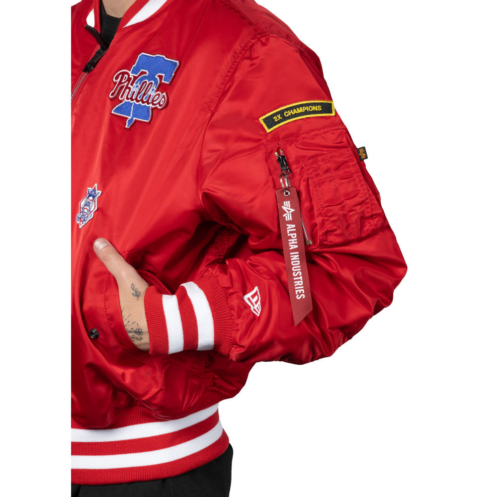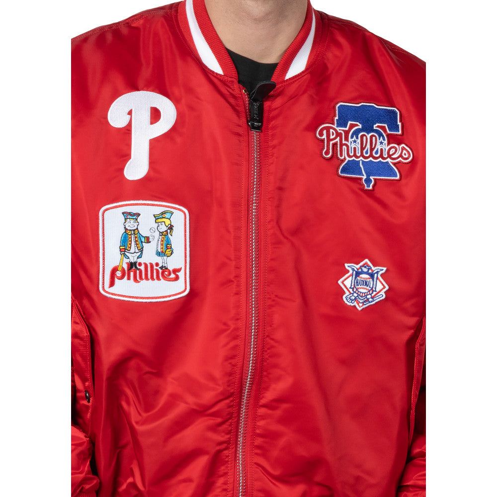 Esta MA-1 Bomber Jacket Alpha Industries X Philadelphia Phillies de la colección Alpha x New Era x MLB presenta parches de los Phillies bordados en el pecho y en las mangas con un logo del equipo en la parte trasera. El lado reversible de la chamarra presenta un diseño en camuflaje militar y una etiqueta de New Era con un mensaje de unión en diferentes idiomas. Cómprala ya.