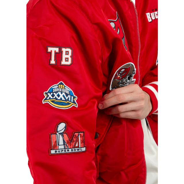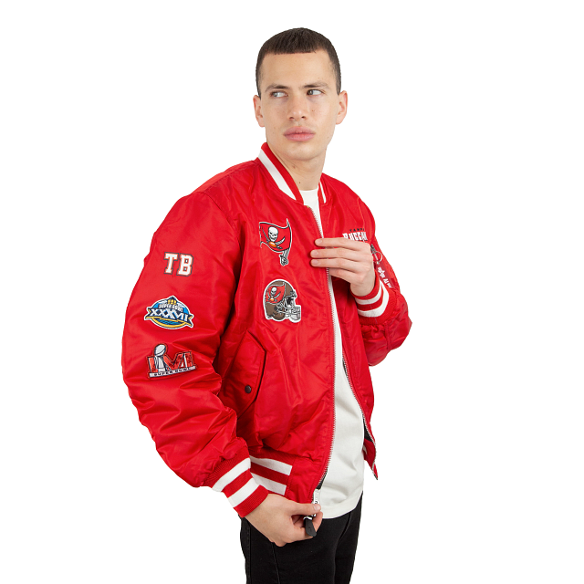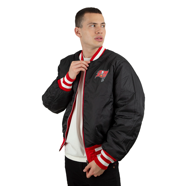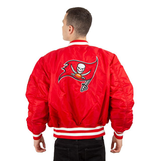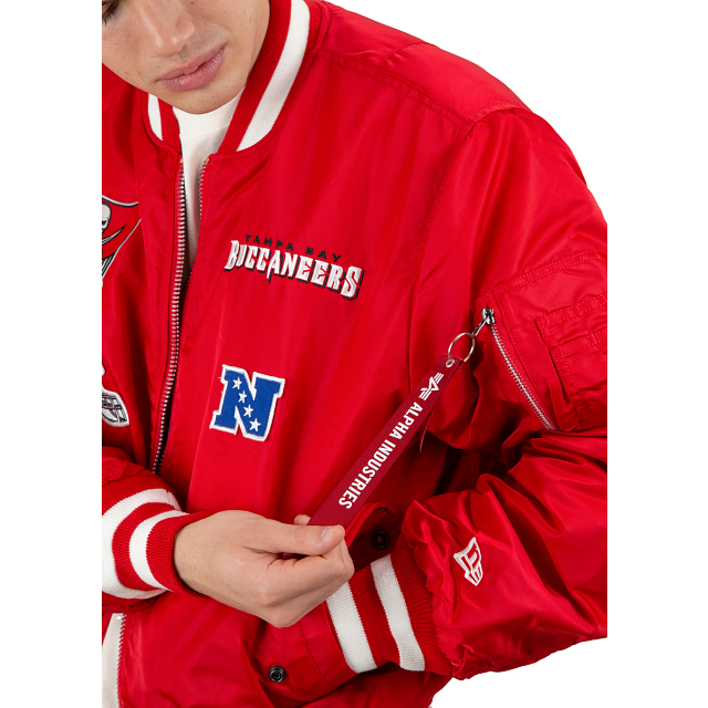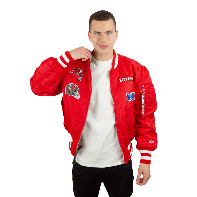 Esta MA-1 Bomber Jacket Alpha Industries de Tampa Bay Buccaneers presenta parches de los Buccaneers bordados en el pecho y en las mangas con un logo del equipo en la parte trasera. El lado reversible de la chamarra presenta un diseño en color negro y una etiqueta de New Era con un mensaje de unión en diferentes idiomas en la parte trasera. Cómprala ya.