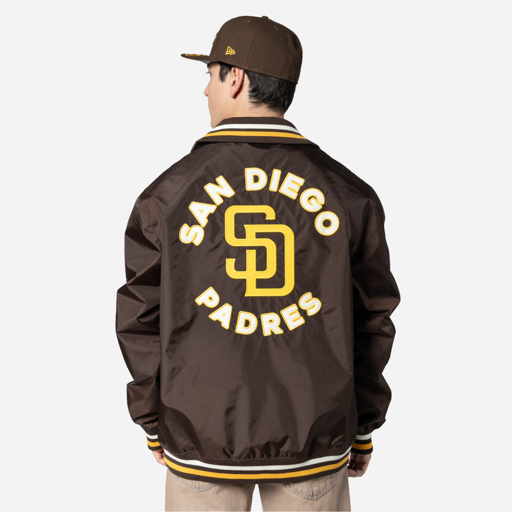 Esta Chamarra New Era de San Diego Padres de la colección MLB Throwback presenta el logo de los Padres en la parte frontal izquierda, el nombre y logo del equipo al reverso y el flag de New Era bordado en la manga izquierda. Eleva tu outfit y cómprala ya.