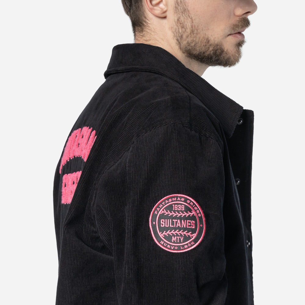 Esta Chamarra New Era de Sultanes de Monterrey de la colección LMB Sultanes Capsule presenta un elegante diseño en color negro con el logotipo retro de los Sultanes en el frente, un homenaje a los Fantasmas Grises en la espalda, un diseño en la manga derecha y el flag de New Era en la manga izquierda. Apoya a tu equipo con estilo y cómprala ya.