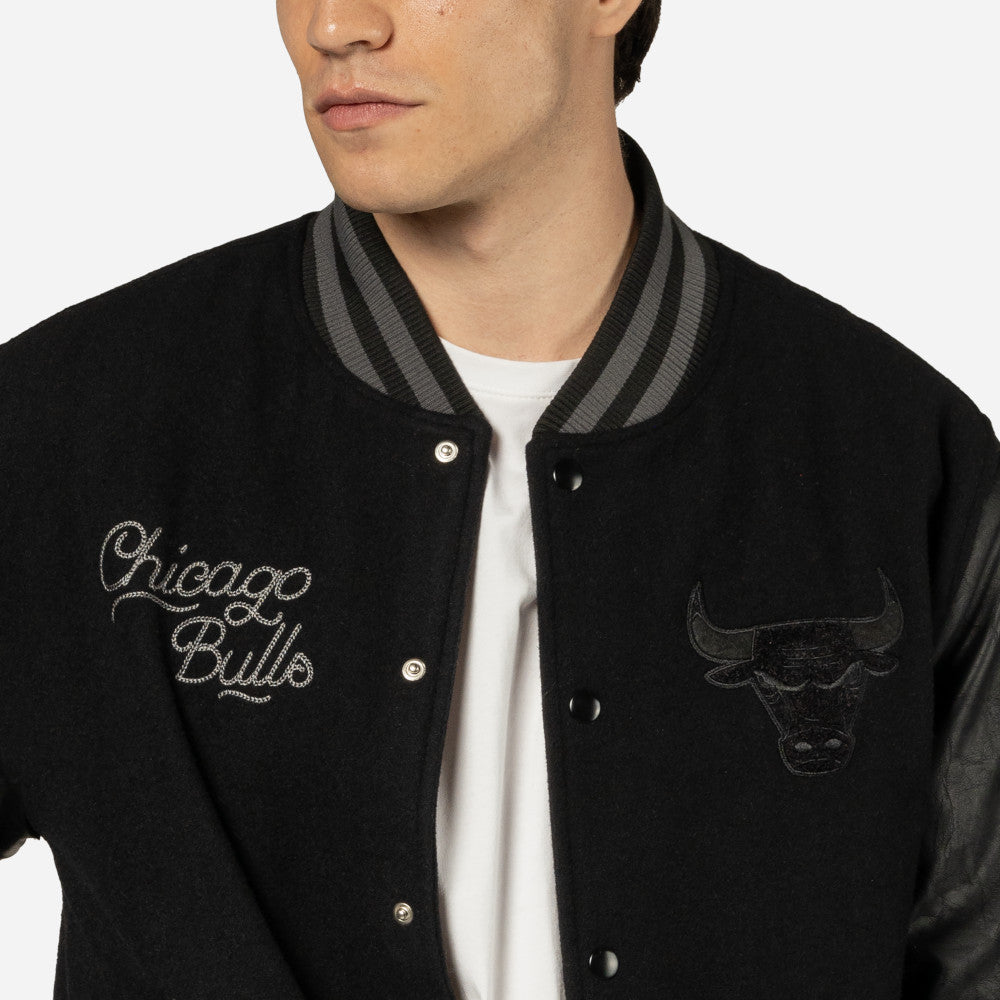Esta Chamarra Varsity New Era de Chicago Bulls de la colección NBA Team Script presenta un diseño con el nombre y logotipo de los Bulls en la parte frontal y al reverso, parches representativos del equipo en la manga derecha y el flag de New Era bordado en la manga izquierda. Completa tu outfit y cómprala ya.