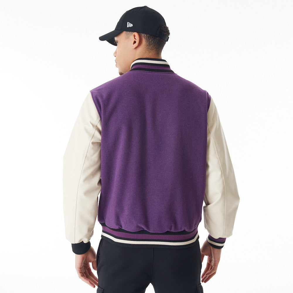 Esta Chamarra Varsity New Era de Los Angeles Lakers de la colección NBA Heritage Classics presenta un diseño con el logotipo de los Lakers en la parte frontal y el flag de New Era bordado en la manga izquierda. Luce con estilo y cómprala ya.