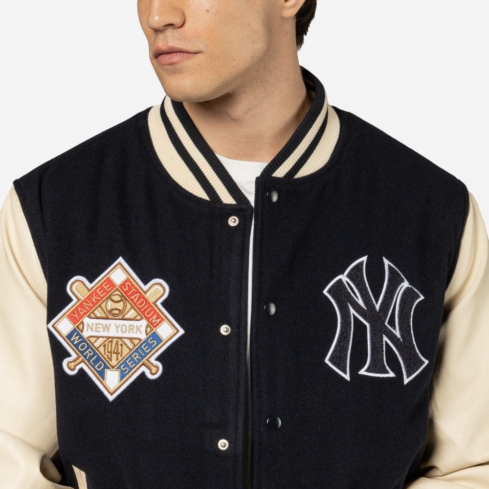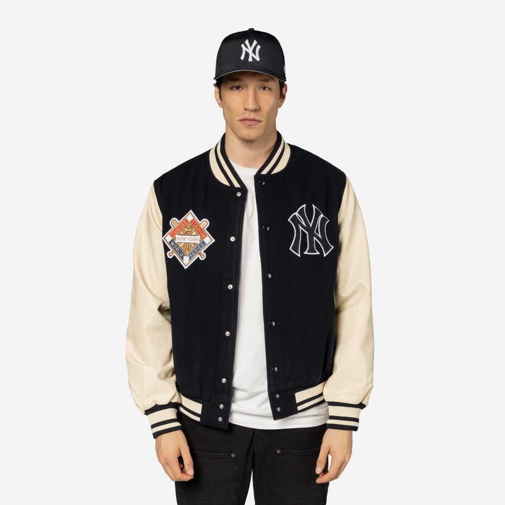 Esta Chamarra Varsity New Era de New York Yankees de la colección MLB World Patches presenta un diseño con una imagen conmemorativa y el logotipo de los Yankees en la parte frontal, una imagen conmemorativa en grande al reverso y el flag de New Era bordado en la manga izquierda. Cómprala ya.