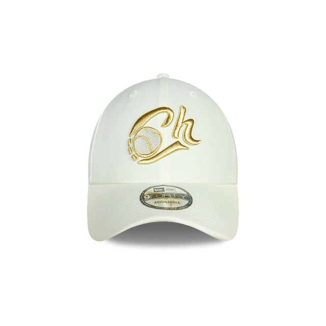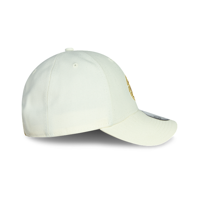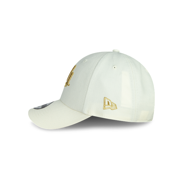 Esta gorra New Era 9FORTY de los Charros de Jalisco de la colección LAMP Essential presenta un diseño de color blanco con el logotipo de los Charros en color dorado bordado en los paneles frontales, y el flag de New Era bordado en el lado izquierdo. Apoya a tu equipo y cómprala ya.