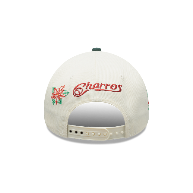 Esta gorra curva New Era 9FORTY A-Frame de Charros de Jalisco de la colección LMB Nochebuena presenta un diseño con flores de nochebuena bordadas en la corona, el logotipo de los Charros bordado en el panel frontal, el nombre del equipo en la parte de atrás y el flag de New Era bordado del lado izquierdo. Cómprala ya.