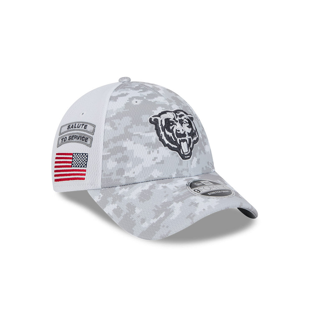 Esta gorra curva New Era 9FORTY de Chicago Bears de la colección NFL Salute to Service 2024 presenta un diseño de camuflaje con el logotipo de los Bears bordado en los paneles frontales, la bandera de Estados Unidos del lado derecho, el logo de la NFL al reverso y el flag de New Era bordado del lado izquierdo. Apoya a tu equipo y cómprala ya.