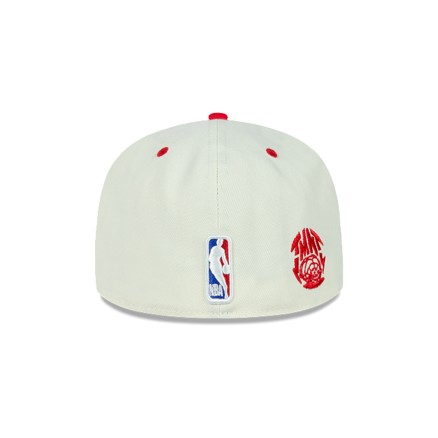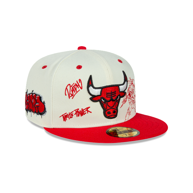 Esta gorra New Era 59FIFTY de Chicago Bulls de la colección NBA Tortugas Ninja en color blanco presenta el logo de los Bulls y la figura de Rafael con detalles alusivos bordado en los paneles frontales, visera plana en color rojo y undervisor en color amarillo, esencial para cualquier fanático. Cómprala ya.