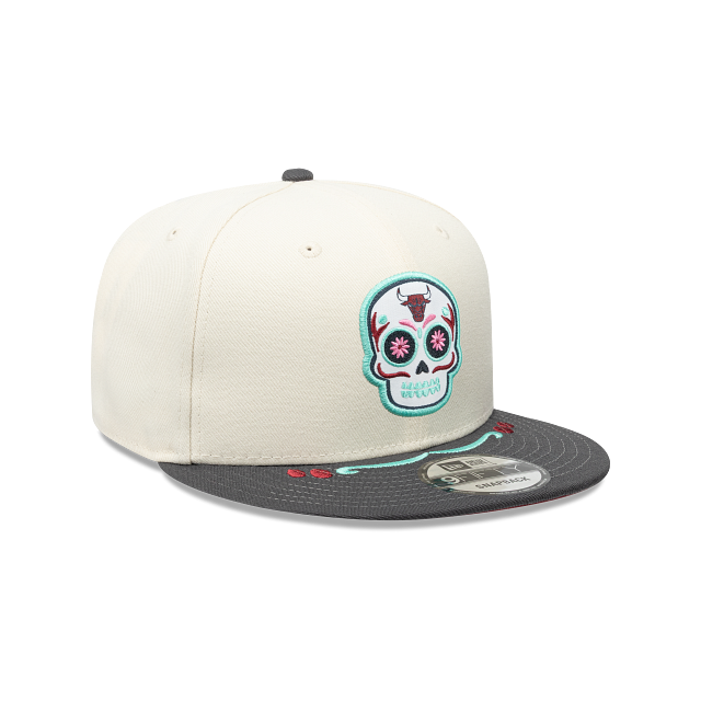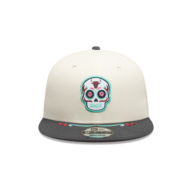 Esta gorra plana New Era 9FIFTY de Chicago Bulls de la colección NBA Sugar Skull presenta un diseño inspirado en el Día de Muertos, el logotipo de los Bulls dentro de una calaverita de azúcar bordada en los paneles frontales, el nombre del equipo en la parte de atrás y el flag de New Era bordado del lado izquierdo. Cómprala ya.