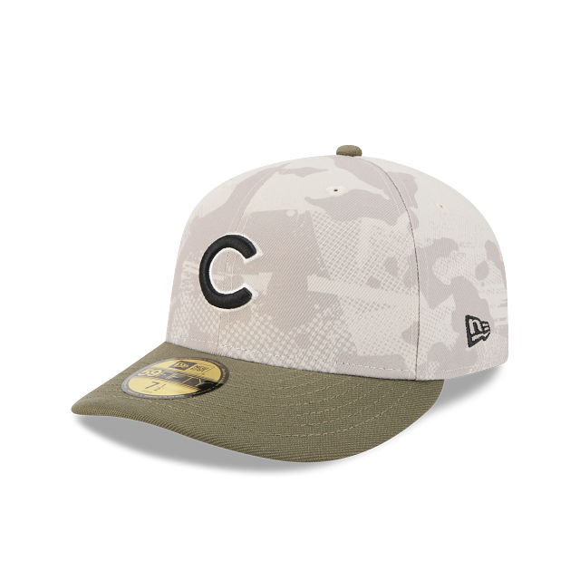 Esta gorra curva New Era 59FIFTY de Chicago Cubs de la colección MLB Armed Forces Day 2025 presenta un diseño de camuflaje en la corona con el logotipo de los Cubs bordado en los paneles frontales, la bandera de Estados Unidos del lado derecho, el MLB Batterman al reverso y el flag de New Era bordado del lado izquierdo. Cómprala ya.