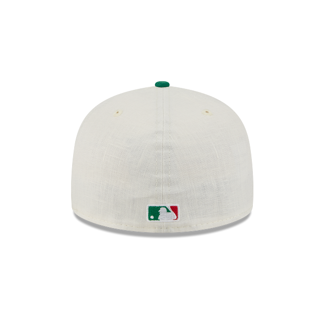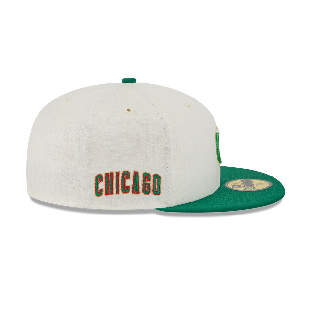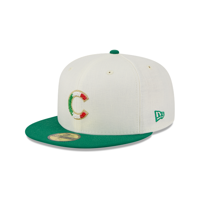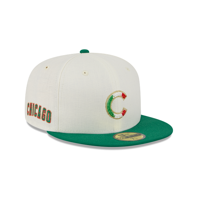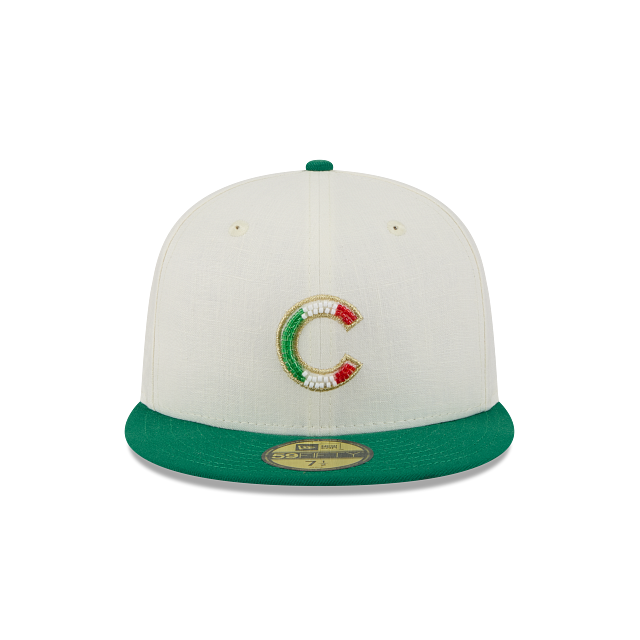 Esta gorra plana New Era 59FIFTY de Chicago Cubs de la colección MLB Beaded Linen presenta un diseño en lino inspirado en los colores patrios con el logotipo de los Cubs relleno de cuentas en los paneles frontales, el nombre del equipo del lado derecho, el MLB Batterman al reverso y el flag de New Era bordado del lado izquierdo. Cómprala ya.