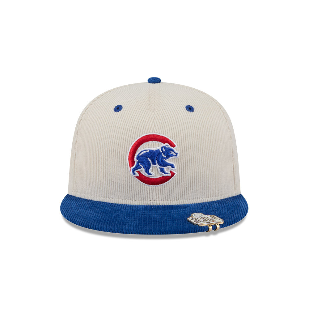 Esta gorra plana New Era 59FIFTY de Chicago Cubs de la colección MLB Cord Visor Clip presenta un diseño 2-tone en pana con el logotipo de los Cubs bordado en los paneles frontales, un clip World Series en el visor, un parche de la Liga de la MLB a la que pertenecen del lado derecho, el MLB Batterman al reverso y el flag de New Era bordado del lado izquierdo. Cómprala ya.