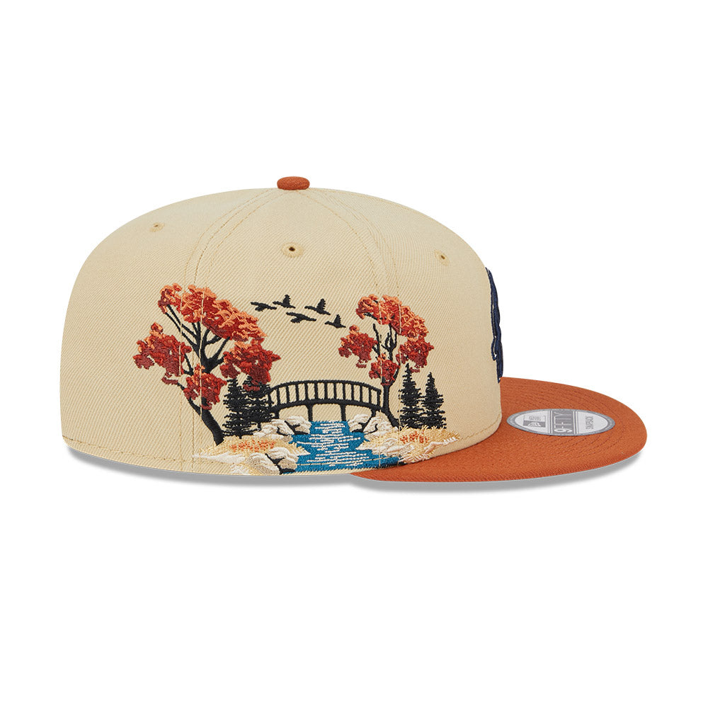 Esta gorra plana New Era 9FIFTY de Chicago Cubs de la colección MLB Fall Landscape presenta un diseño inspirado en la estación de otoño con el logotipo de los Cubs bordado en los paneles frontales, un paisaje otoñal del lado derecho y el flag de New Era bordado del lado izquierdo. Cómprala ya.