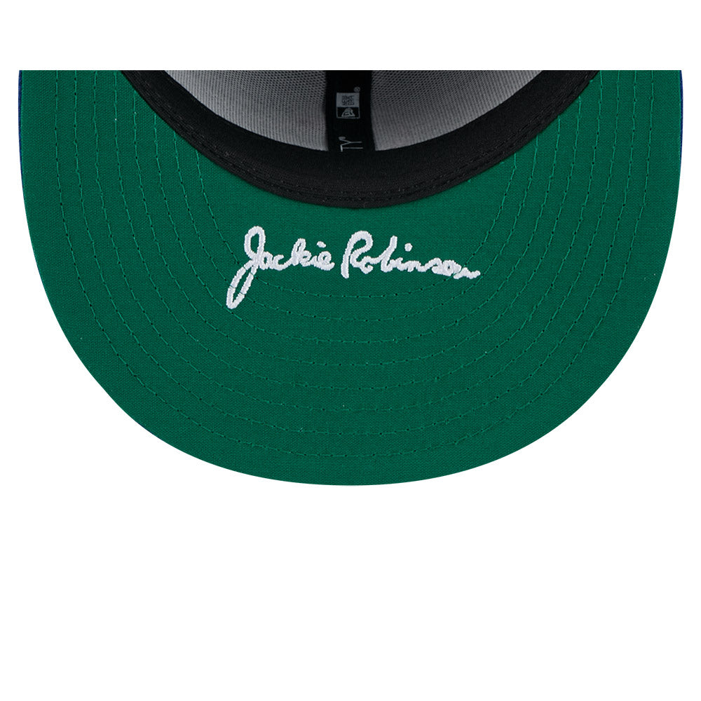 Esta gorra plana New Era 59FIFTY de Chicago Cubs de la colección MLB Jackie Robinson Day 2025 presenta el logotipo de los Cubs bordado en los paneles frontales, un parche conmemorativo Jackie Robinson Breaking Barriers del lado derecho, la firma del jugador en el undervisor, el MLB Batterman al reverso y el flag de New Era bordado del lado izquierdo. Cómprala ya.