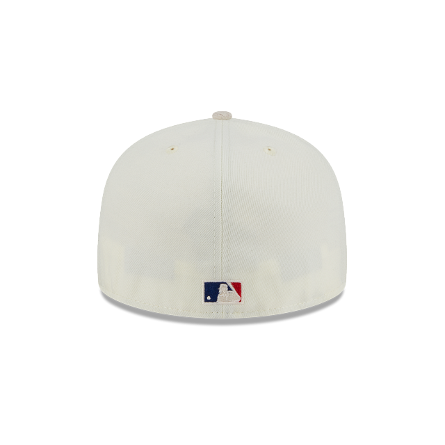Esta gorra New Era 59FIFTY de Chicago Cubs de la colección MLB Logo Select presenta un elegante diseño en color blanco con el logotipo retro de los Cubs bordado en los paneles frontales, un parche conmemorativo del lado derecho, el MLB Batterman al reverso y el flag de New Era bordado en el lado izquierdo. Luce con estilo. Cómprala ya.