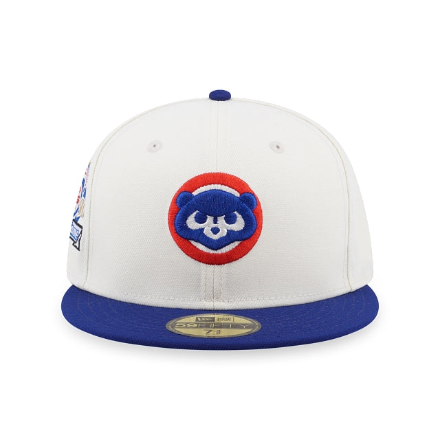 Esta gorra New Era 59FIFTY de Chicago Cubs de la colección MLB White Pack presenta un logo retro de los Cubs bordado en los paneles frontales con sidepatch en el lado derecho. Cómprala ya.