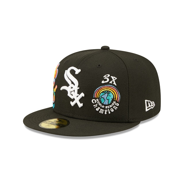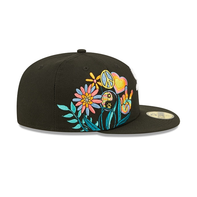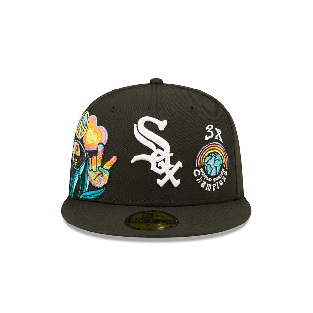 Esta 59FIFTY de Chicago White Sox de la colección Groovy presenta el logotipo de los Sox bordado en los paneles frontales a juego con un parche de World Series Champions y un diseño de peace and love floral en el lado derecho. Detalles adicionales incluyen undervisor azul. Cómprala ya.