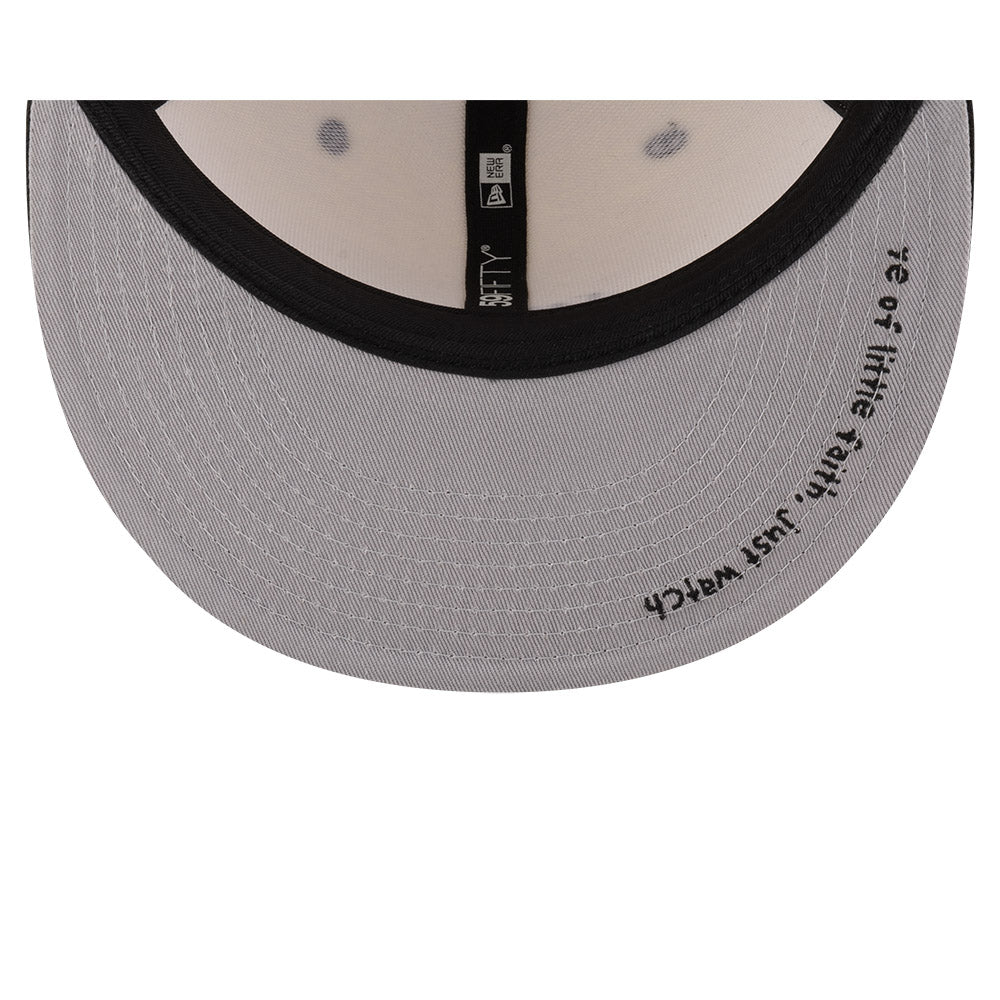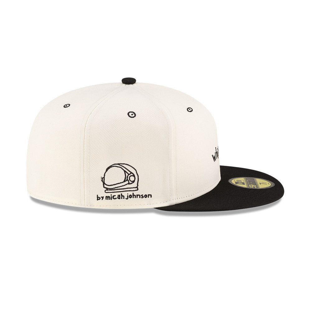 Esta gorra plana New Era 59FIFTY de Chicago White Sox de la colaboración Micah Johnson X MLB presenta el nombre de los White Sox bordado en los paneles frontales, el casco del astronauta AKU del lado derecho, el MLB Batterman al reverso, la frase Ye of little faith, just watch bordada en el undervisor y el flag de New Era bordado del lado izquierdo. Cómprala ya.