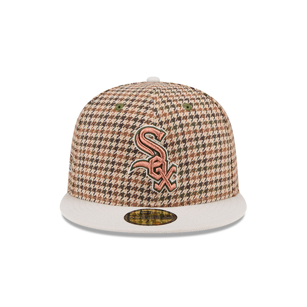 Esta gorra plana New Era 59FIFTY de Chicago White Sox de la colección MLB Houndstooth presenta un diseño con el clásico patrón houndstooth con el logotipo de los White Sox bordado en los paneles frontales, parche World Series del lado derecho, el MLB Batterman al reverso y el flag de New Era bordado del lado izquierdo. Cómprala ya.