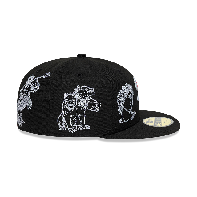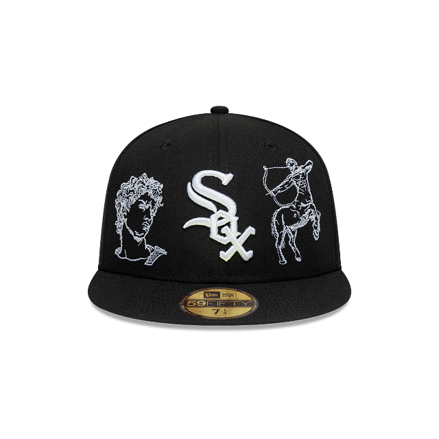 Esta gorra plana New Era 59FIFTY de Chicago White Sox de la colección MLB Mythical presenta el logotipo de los White Sox junto con Apolo y un Centauro bordados en los paneles frontales, un Cerbero bordado del lado derecho, Poseidón y un Minotauro junto con el MLB Batterman en la parte de atrás y el flag de New Era bordado del lado izquierdo. Cómprala ya.