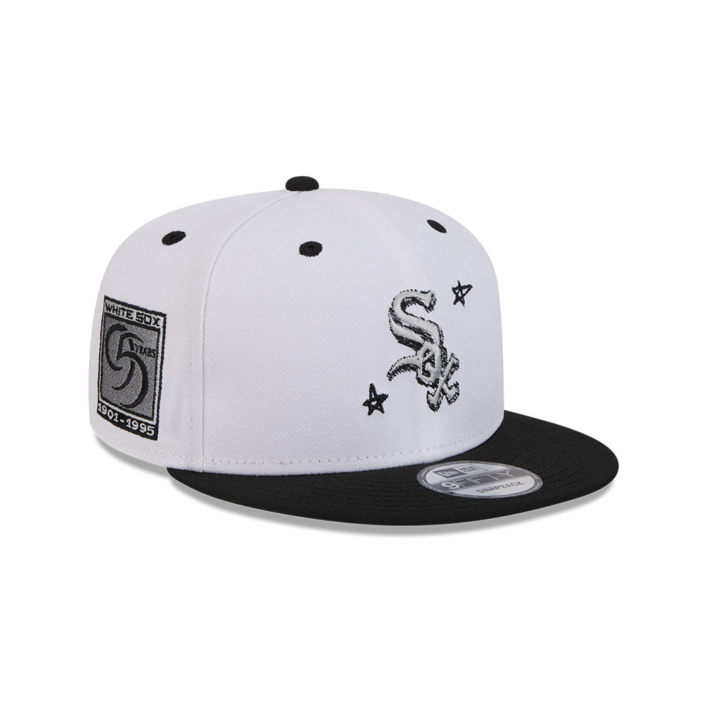 Esta gorra plana New Era 9FIFTY de Chicago White Sox de la colección MLB Official Doodles presenta un diseño con el logotipo de los White Sox con un detalle de estrellas bordado en los paneles frontales, un parche conmemorativo del lado derecho, el logo del equipo junto el nombre de la ciudad al reverso y el flag de New Era bordado del lado izquierdo. Apoya a tu equipo y cómprala ya.