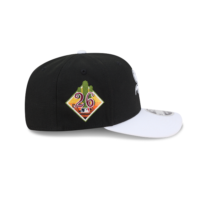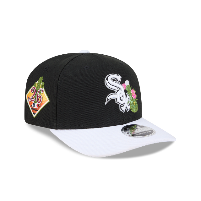 Esta gorra curva New Era 9SEVENTY Stretch Snap de Chicago White Sox de la colección MLB Spring Training 2026 presenta el logotipo de los White Sox bordado acompañado de un detalle floral en los paneles frontales, parche Cactus League del lado derecho, el MLB Batterman en la parte de atrás, estampado en forro interior y el flag de New Era bordado del lado izquierdo. Cómprala ya.