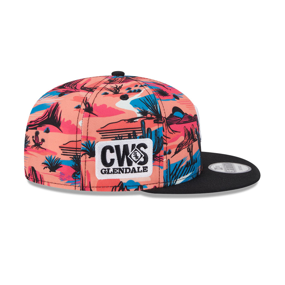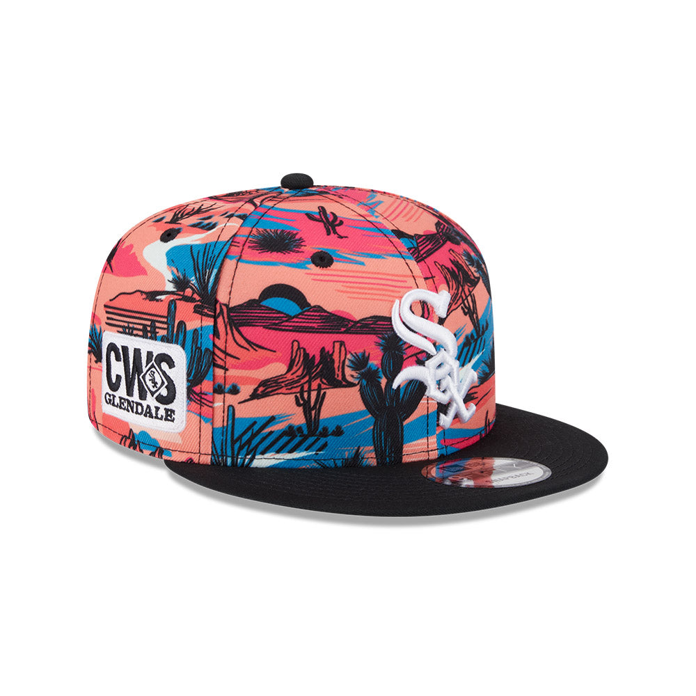 Esta gorra plana New Era 9FIFTY de Chicago White Sox de la colección MLB Spring Training Fan Pack 2025 presenta un diseño con un estampado de paisaje desértico en la corona con el logotipo de los White Sox bordado en los paneles frontales, un parche representativo del equipo del lado derecho y el flag de New Era bordado del lado izquierdo. Apoya a tu equipo y cómprala ya.