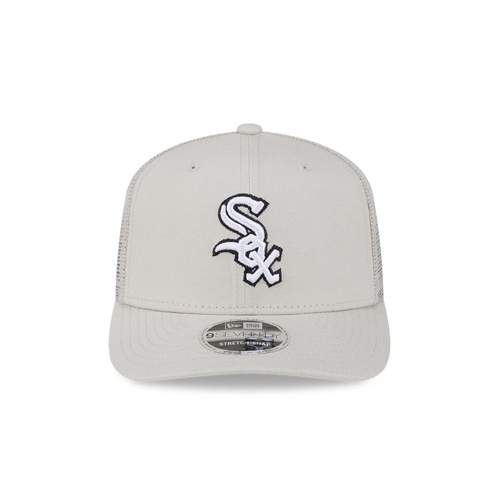 Esta gorra curva New Era 9SEVENTY Stretch Snap de Chicago White Sox de la colección MLB Trucker Canvas presenta el logotipo de los White Sox bordado en los paneles frontales, malla trucker al reverso y el flag de New Era bordado del lado izquierdo. Cómprala ya.