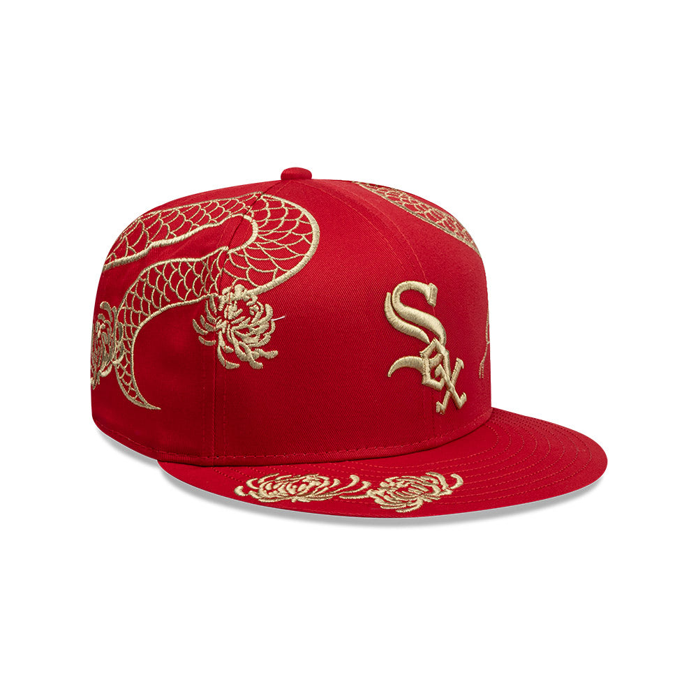 Esta gorra plana New Era 59FIFTY de Chicago White Sox de la colección Lunar New Year presenta un diseño con serpientes con flores bordadas en la corona, el logotipo de los White Sox bordado en los paneles frontales, flores bordadas en el lado derecho del visor, el MLB Batterman al reverso y el flag de New Era bordado del lado izquierdo. Cómprala ya.