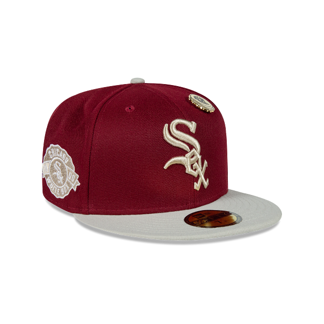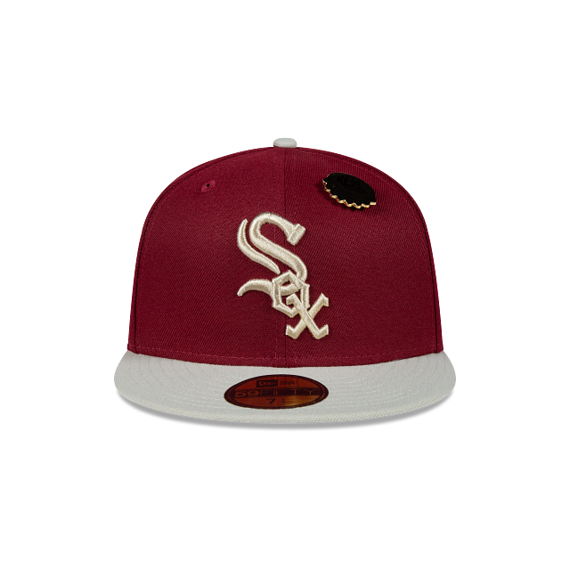 Esta gorra New Era 59FIFTY de Chicago White Sox de la colección Beer Pack contiene un pin especial de una corcholata, el logotipo de los White Sox bordado al frente, un diseño en dos tonos con la corona vino y la visera gris, un parche conmemorativo y el flag de New Era bordado en el lado izquierdo. Únete al Oktoberfest y cómprala ya