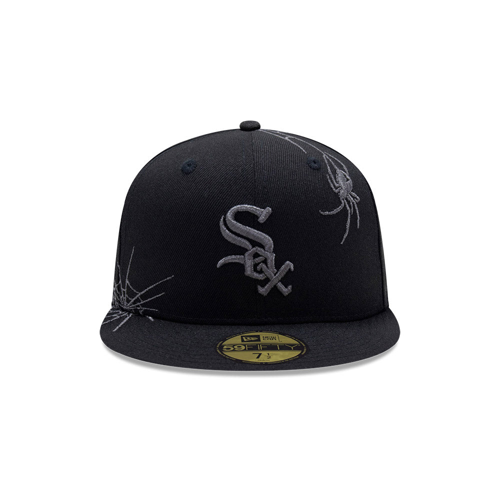 Esta gorra plana New Era 59FIFTY de Chicago White Sox de la colección Spider Web presenta un diseño con el logotipo de los White Sox bordado en los paneles frontales, telarañas y una araña en la corona y el flag de New Era bordado del lado izquierdo. Cómprala ya.