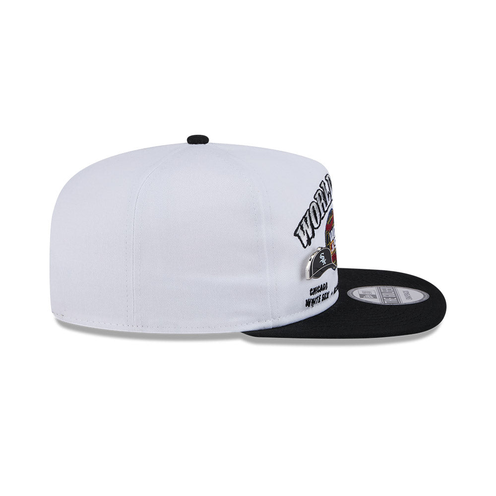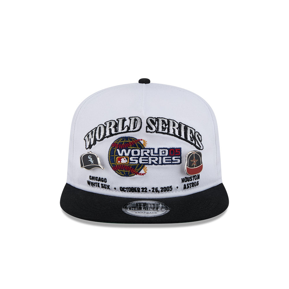 Esta gorra plana New Era Golfer de Chicago White Sox VS Houston Astros de la colección MLB Championship Pin presenta un diseño con World Series bordado y el parche de la edición de este campeonato en los paneles frontales junto con dos pines en forma de las gorras de los equipos y el flag de New Era bordado del lado izquierdo. Cómprala ya.