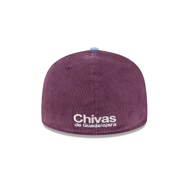 Esta gorra plana New Era 59FIFTY de Chivas de la colección Futbol Mexicano Corduroy presenta una confección en pana con el logotipo de las Chivas bordado en los paneles frontales, el nombre del equipo al reverso y el flag de New Era bordado del lado izquierdo. Cómprala ya.