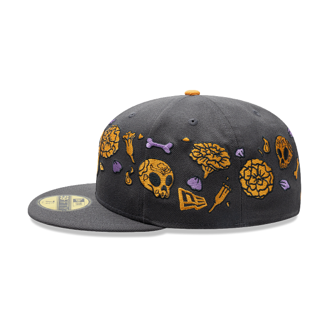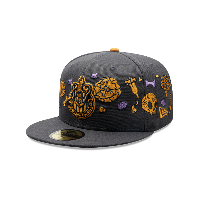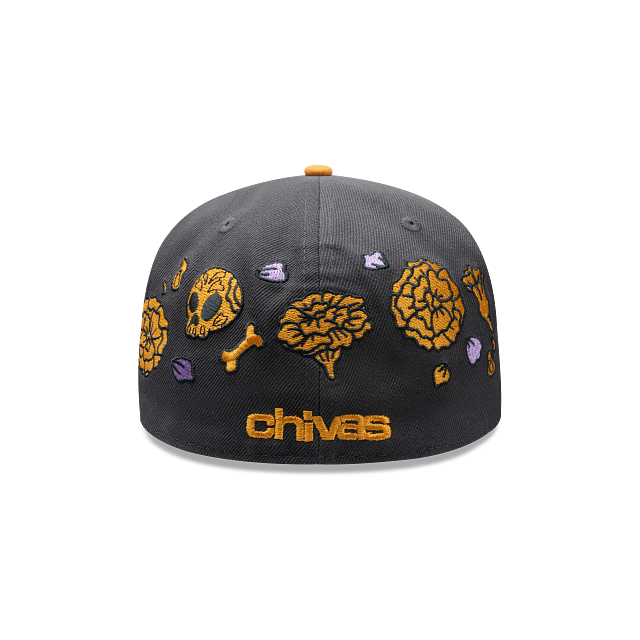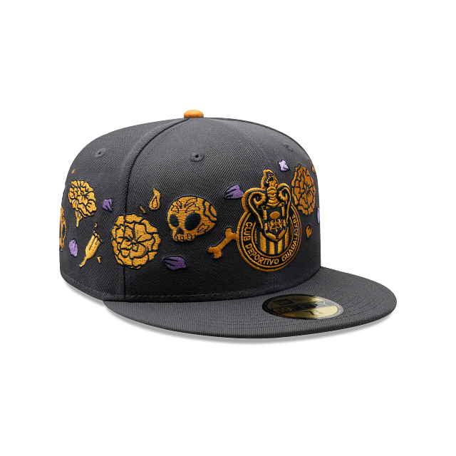 Esta gorra plana New Era 59FIFTY de Chivas de la colección Futbol Mexicano Día de Muertos presenta un diseño para conmemorar el Día de Muertos con flores de cempasúchil y calaveritas bordadas en la corona, el logotipo de las Chivas bordado en los paneles frontales, el nombre del equipo en la parte de atrás y el flag de New Era bordado del lado izquierdo. Cómprala ya.