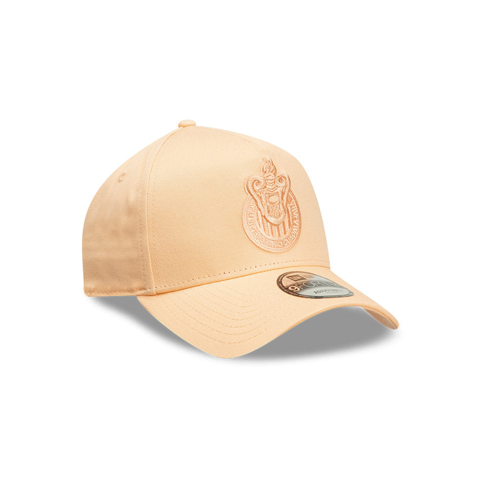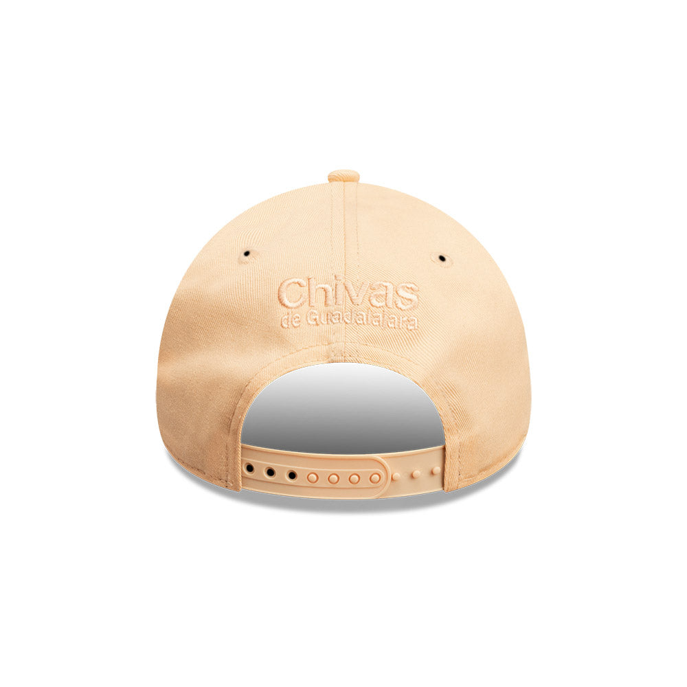 Esta gorra curva New Era 9FORTY A-Frame de Chivas de la colección Peach presenta un diseño en color durazno con el logotipo de las Chivas bordado en los paneles frontales, el nombre del equipo al reverso y el flag de New Era bordado del lado izquierdo. Apoya a tu equipo y cómprala ya.