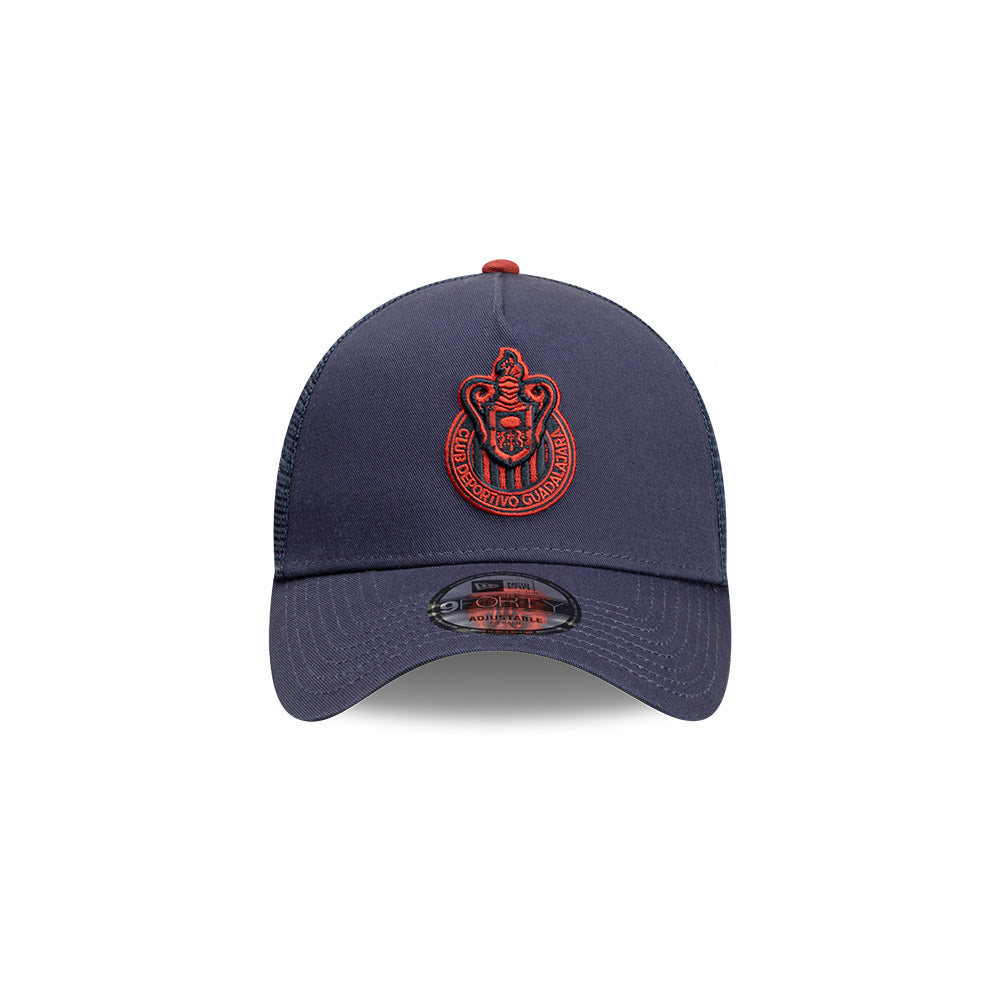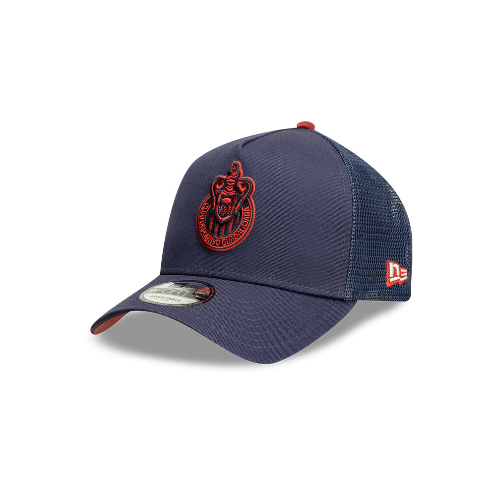 Esta gorra curva New Era 9FORTY A-Frame de Chivas de la colección Trucker Colors presenta el logotipo de las Chivas bordado en los paneles frontales, malla trucker al reverso y el flag de New Era bordado del lado izquierdo. Cómprala ya.