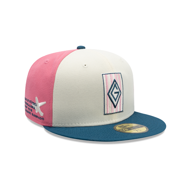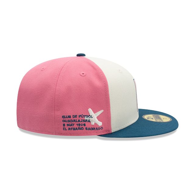 Esta gorra plana New Era 59FIFTY de Chivas de la colección Futbol Mexicano White Front presenta el logotipo retro de las Chivas bordado en los paneles frontales, datos del equipo del lado derecho, el nombre del equipo al reverso y el flag de New Era bordado del lado izquierdo. Cómprala ya.