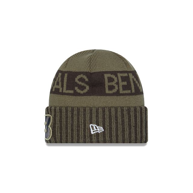 Este gorrito New Era de Cincinnati Bengals de la colección NFL Salute to Service 2025 presenta el logotipo de los Bengals bordado en la parte frontal, el nombre del equipo en la parte superior, la bandera de Estados Unidos en la parte derecha, el logo de la NFL en la parte de atrás y el flag de New Era bordado del lado izquierdo. Cómprala ya.