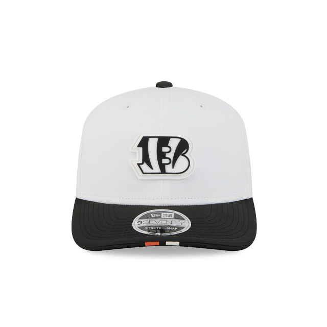 Esta gorra curva New Era 9SEVENTY Stretch Snap de Cincinnati Bengals de la colección NFL Training 2025 presenta una corona en color blanco con el logotipo de los Bengals engomado en los paneles frontales, el logo de la NFL al reverso y el flag de New Era engomado del lado izquierdo. Apoya a tu equipo y cómprala ya.