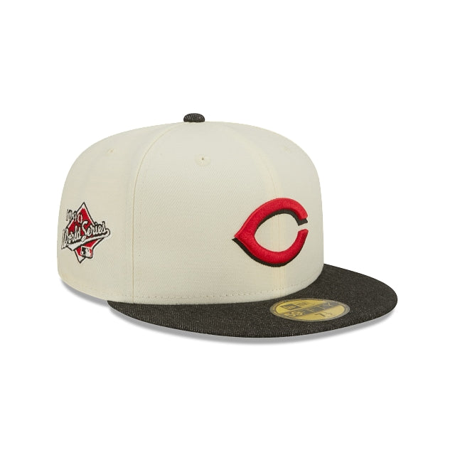 Esta gorra New Era 59FIFTY de Cincinnati Reds MLB Black Denim presenta el logotipo de los Reds bordado en los paneles frontales y un parche de World Series en el lado derecho. Detalles adicionales incluyen visera de mezclilla negra y undervisor gris. Cómprala ya.
