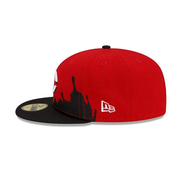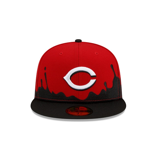 Esta gorra New Era 59FIFTY de Cincinnati Reds MLB Drip Front presenta el logotipo del equipo bordado en los paneles frontales con un drip de pintura en un color alternativo del equipo que viene desde la visera y el logo de MLB Batterman en la parte trasera. Cómprala ya.