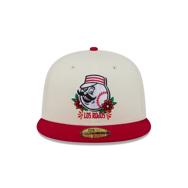 Esta gorra plana New Era 59FIFTY de Cincinnati Reds de la colección MLB Sugar Skull Mascots presenta la mascota de los Reds bordada en los paneles frontales, la mascota del equipo alusiva a una calaverita de azúcar del lado derecho y el flag de New Era bordado del lado izquierdo. Cómprala ya.