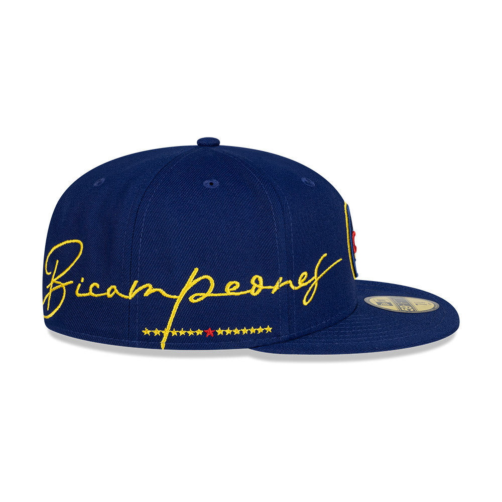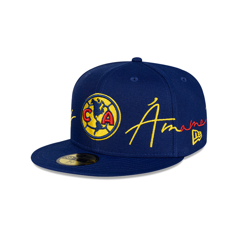 Esta gorra plana New Era 59FIFTY de Club América de la colección América Bicampeón presenta un diseño con el logotipo del América bordado en los paneles frontales, frase de Bicampeones y Ámame Más bordadas en la corona, las estrellas de sus campeonatos bordadas del lado derecho y el flag de New Era bordado del lado izquierdo. Cómprala ya.