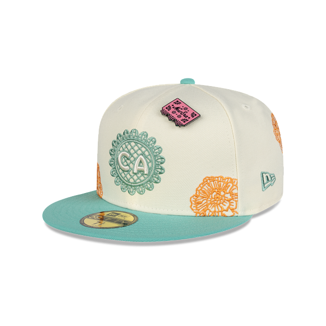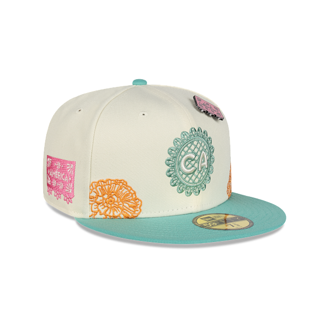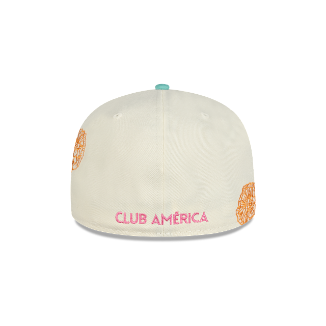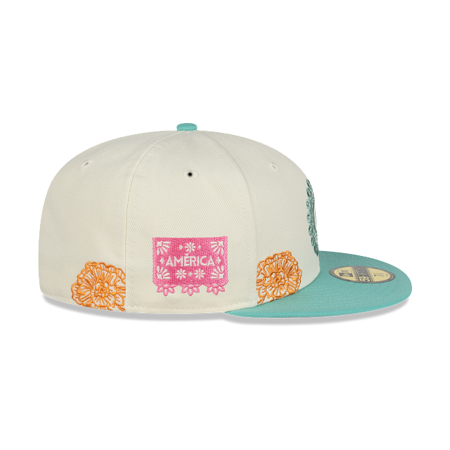 Esta gorra plana New Era 59FIFTY de Club América de la colección Día de Muertos presenta un diseño inspirado en la artesanía del papel picado con el logotipo del América bordado en los paneles frontales, detalles de flores de cempasúchil en la corona, el nombre del equipo del lado derecho y al reverso, un pin en forma de papel picado y el flag de New Era bordado del lado izquierdo. Cómprala ya.