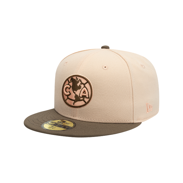Esta gorra plana New Era 59FIFTY de Club América de la colección Futbol Mexicano LMX Peach presenta un diseño en color durazno con el logotipo de América bordado en los paneles frontales, el nombre del equipo en la parte de atrás y el flag de New Era bordado del lado izquierdo. Cómprala ya.
