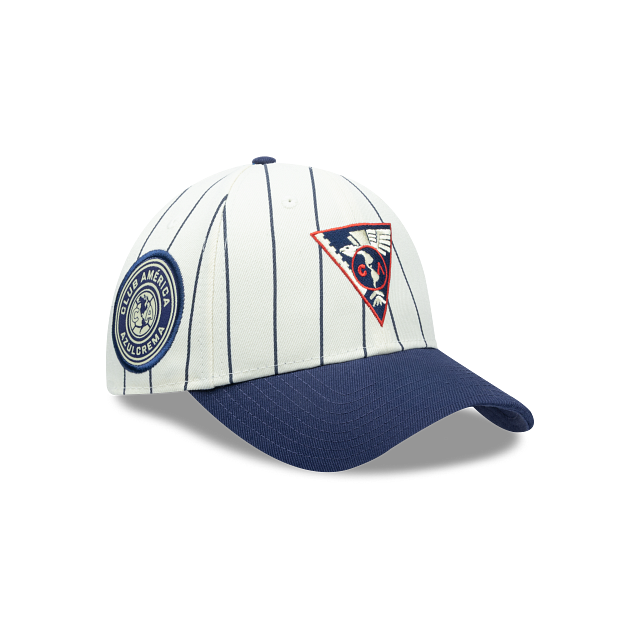 Esta gorra curva New Era 9FORTY de Club América de la colección Futbol Mexicano Retro Pinstripe presenta un diseño a rayas con el logotipo retro del América bordado en los paneles frontales, un parche representativo del equipo del lado derecho y el flag de New Era bordado del lado izquierdo. Cómprala ya.