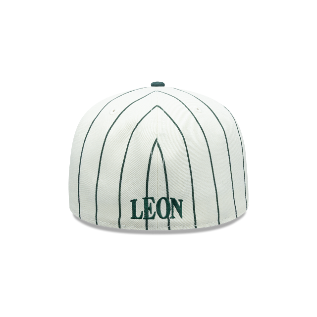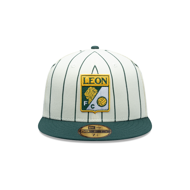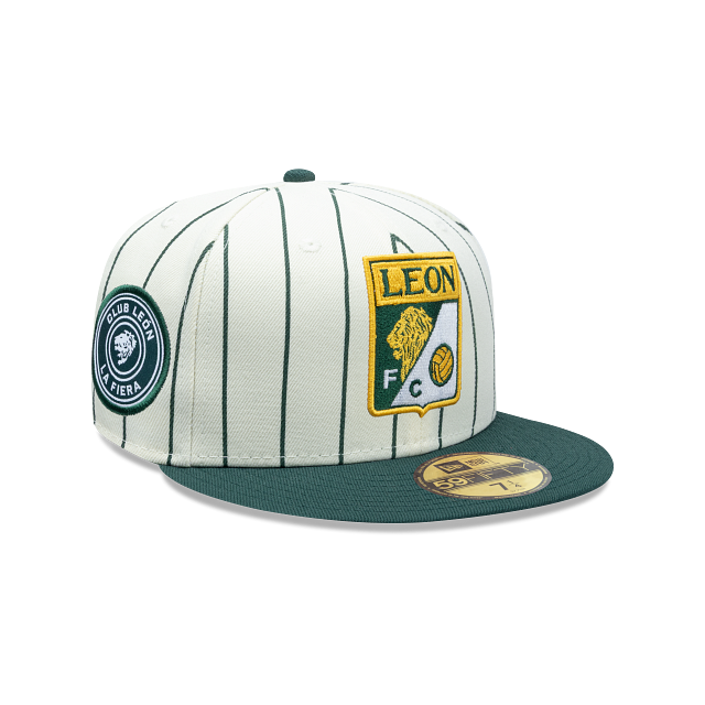 Esta gorra plana New Era 59FIFTY de Club León de la colección Futbol Mexicano Retro Pinstripe presenta un diseño a rayas con el logotipo retro del León bordado en los paneles frontales, un parche representativo del equipo del lado derecho, el nombre del equipo al reverso y el flag de New Era bordado del lado izquierdo. Cómprala ya.
