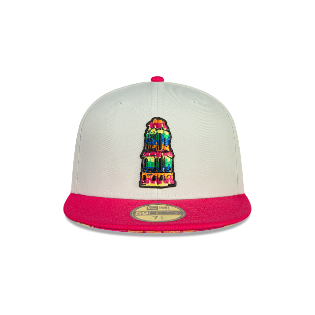 Esta gorra New Era 59FIFTY de Club Pachuca de la colección Piñata Collection presenta una corona blanca con el logotipo de los Tuzos bordado en los paneles frontales, el nombre al reverso, visera rosa con undervisor de piñata y el flag de New Era bordado en el lado izquierdo. Apoya a tu equipo y cómprala ya.